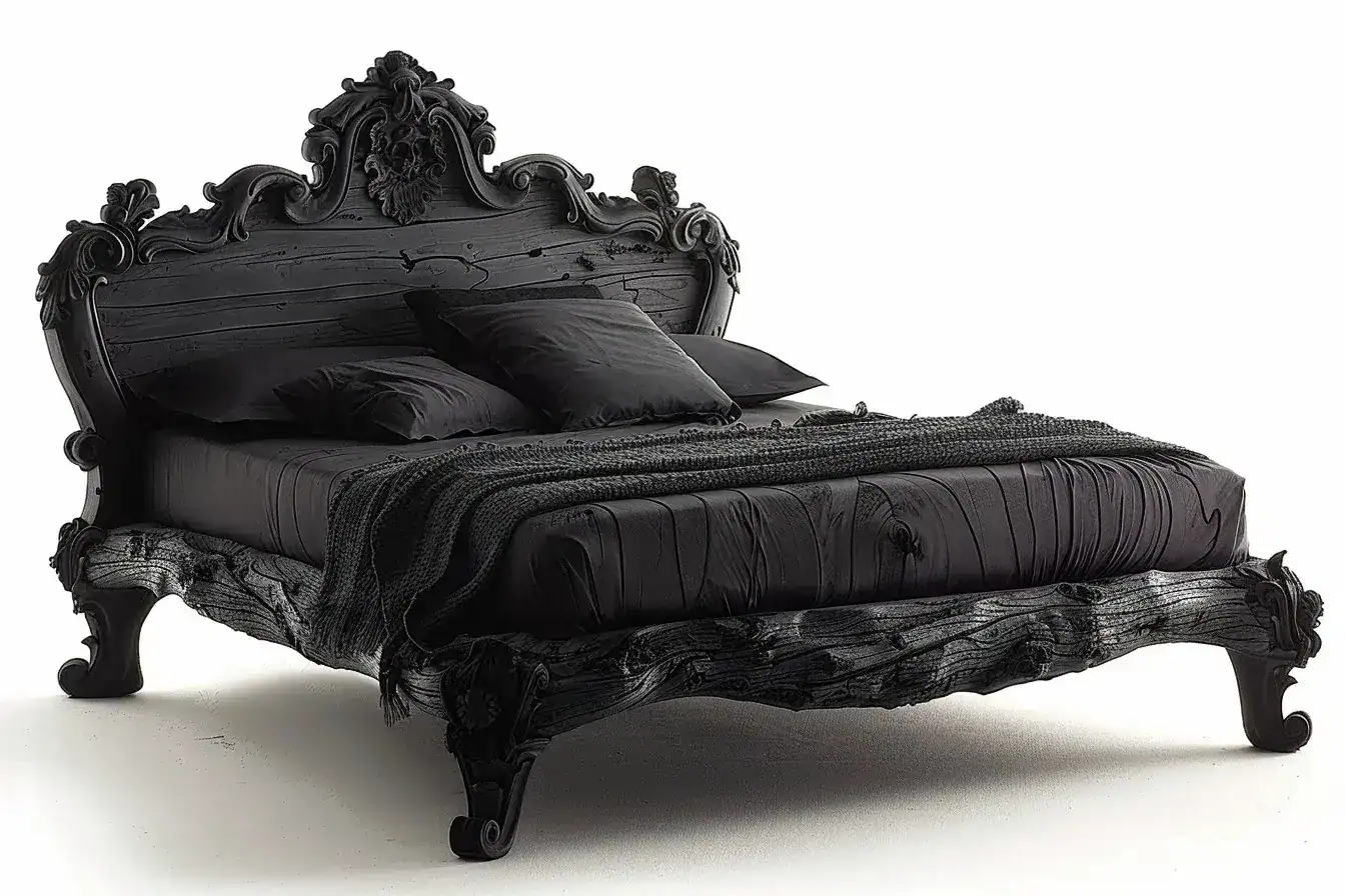 Lit en bois carbonisé technique yakisugi
